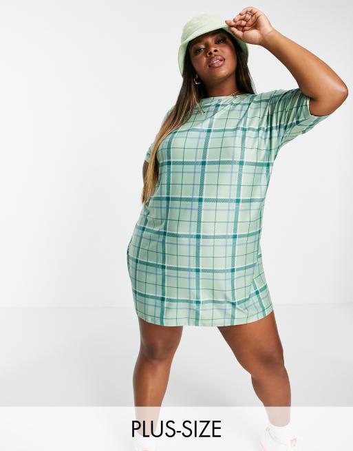 Urban Threads Plus - Robe t-shirt à carreaux - Vert sauge