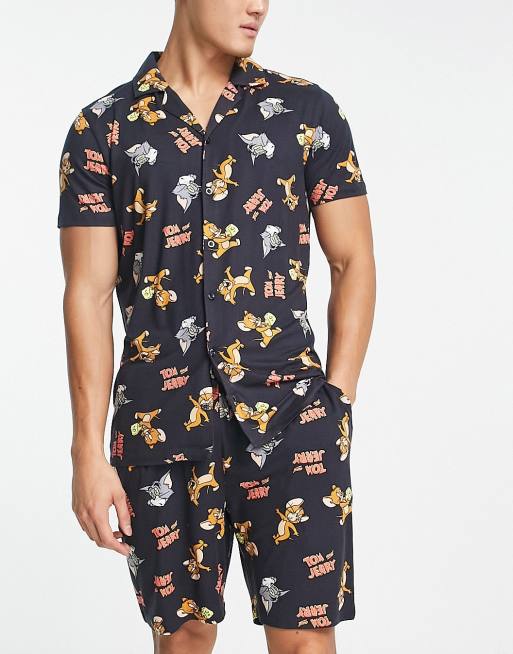 Tom et Jerry - Pyjama avec chemise et short - Noir