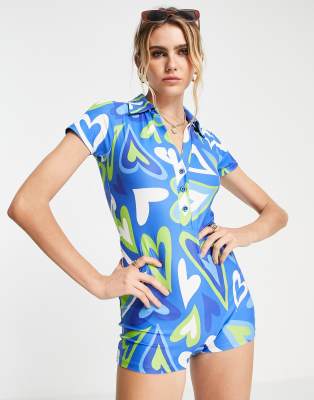 Urban Threads - Combishort à col polo et imprimé cœurs