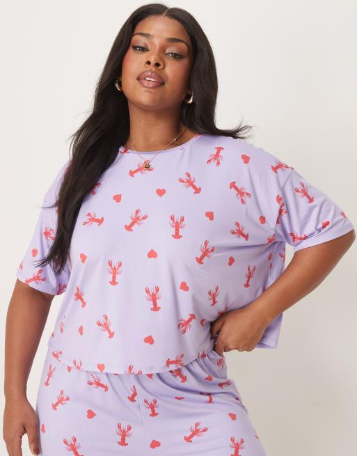 Urban Threads Curve - T-shirt d'ensemble crop top et oversize à imprimé cœur et homard