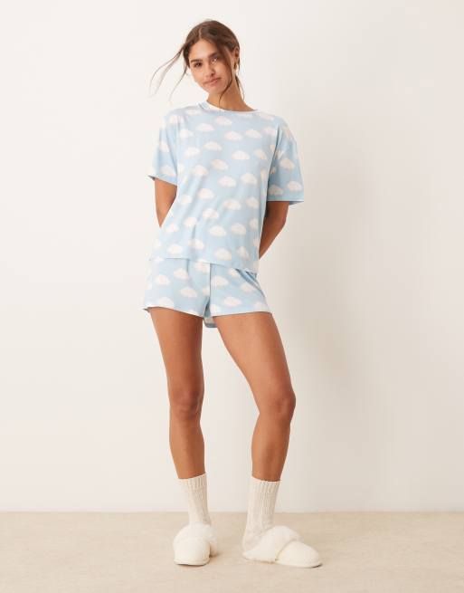 Urban Threads - Ensemble de pyjama avec t-shirt manches courtes et short en polyester - Imprimé nuages