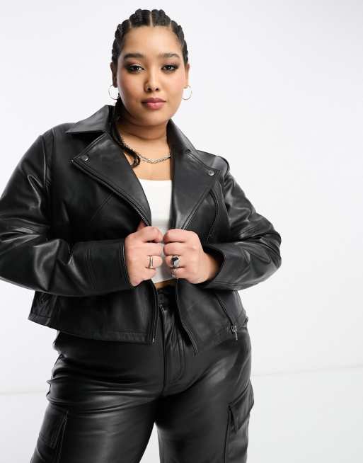 Urbancode Curve - Blouson style motard en cuir véritable - Noir