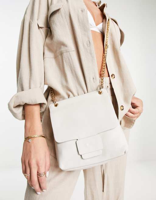 Urbancode - Sac bandoulière en cuir avec détail chaîne - Blanc cassé