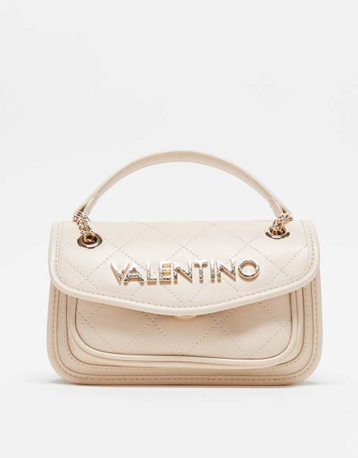 Valentino - Mansion - Sac à main matelassé avec bandoulière chaîne et rabat supérieur - Écru