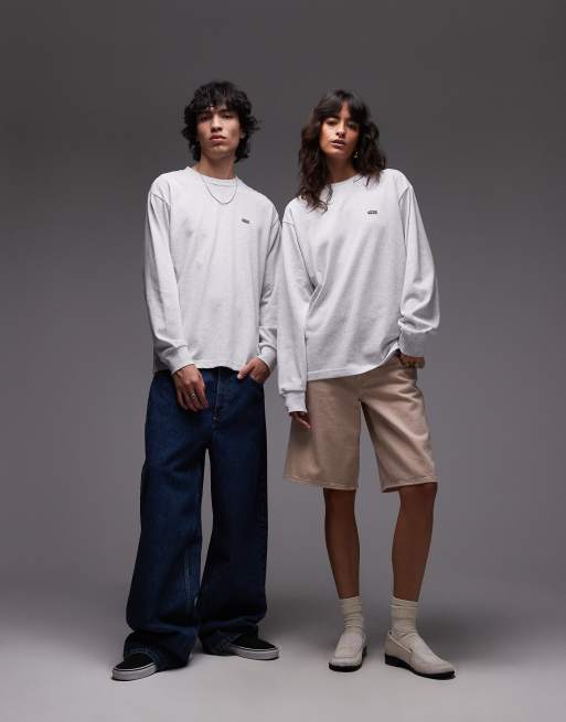 Vans - T-shirt ample avec manches longues et logo sur la poitrine - Gris clair