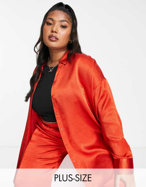 Vero Moda Curve - Chemise d'ensemble oversize en satin - Rouge