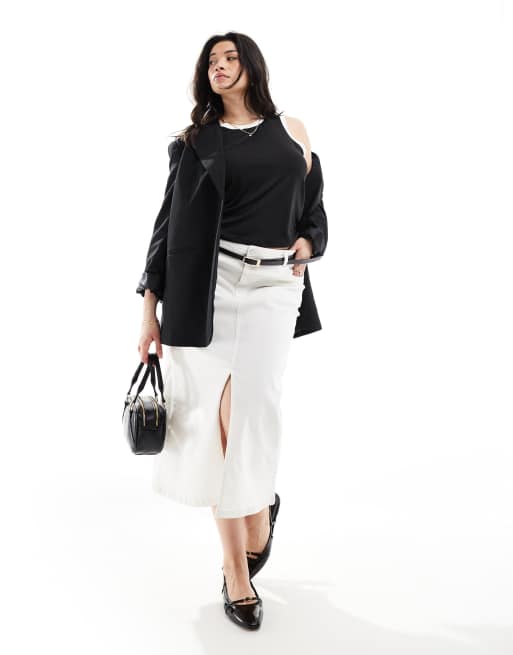 Vero Moda Curve - Jupe mi-longue en jean avec fente devant - Blanc