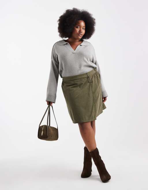 Vero Moda Curve - Mini-jupe en velours côtelé - Kaki
