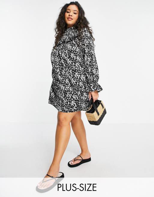 Vero Moda Curve - Robe babydoll courte à volants - Noir imprimé tacheté