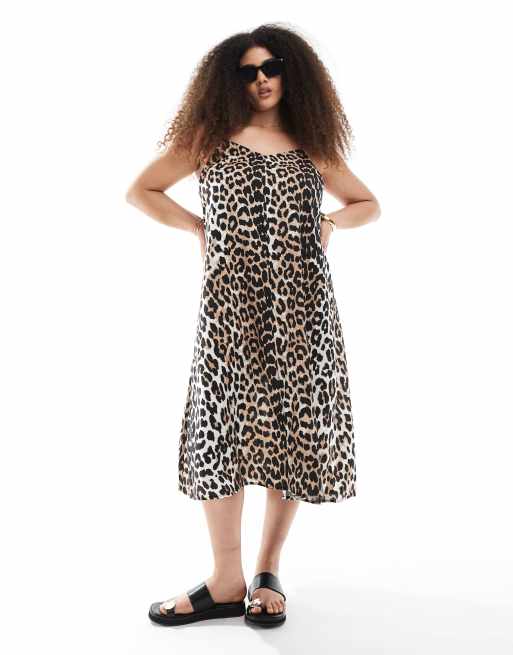 Vero Moda Curve - Robe caraco mi-longue avec devant en V à imprimé léopard