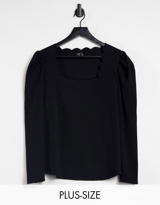 Vero Moda Curve - Top manches longues avec encolure à bords festonnés - Noir
