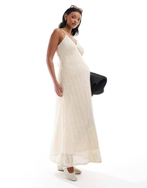 Vero Moda Maternity - Robe longue en dentelle à décolleté plongeant - Crème