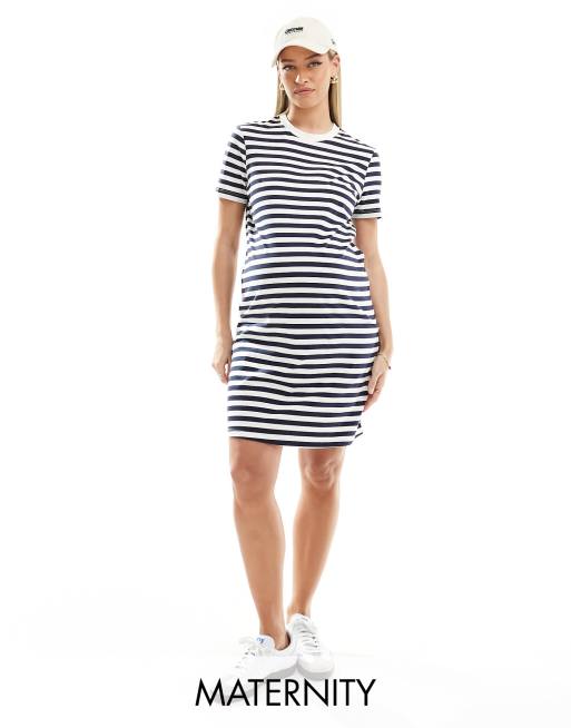 Vero Moda Maternity - Robe t-shirt courte à rayures - Bleu marine/blanc