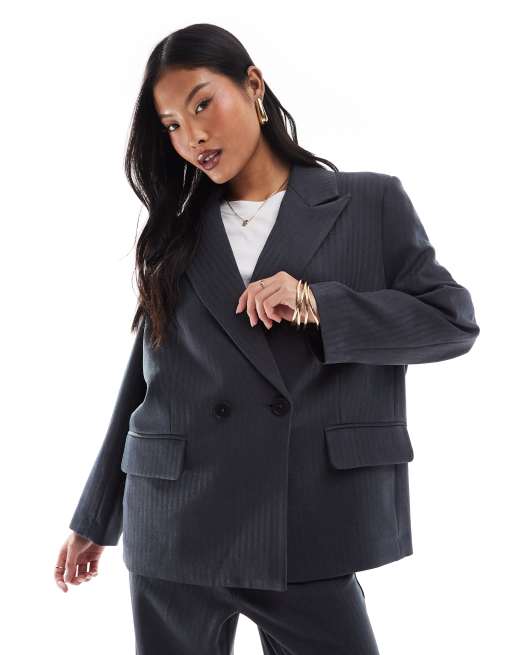 Vero Moda Petite - Blazer d'ensemble ajusté à chevrons - Gris foncé chiné