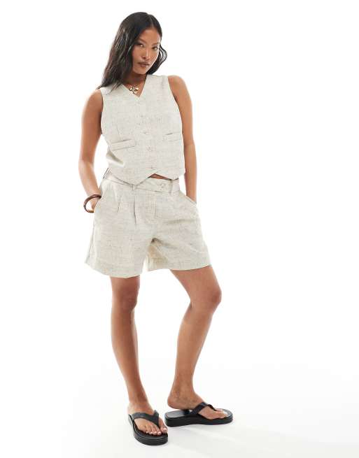 Vero Moda Petite - Ensemble gilet de costume ajusté et short ajusté à pinces - Avoine