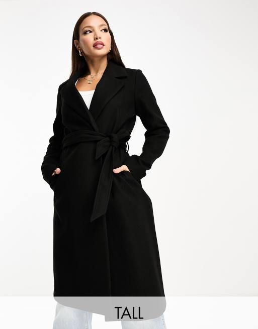 Vero Moda Tall - Manteau ceinturé habillé mi-long - Noir
