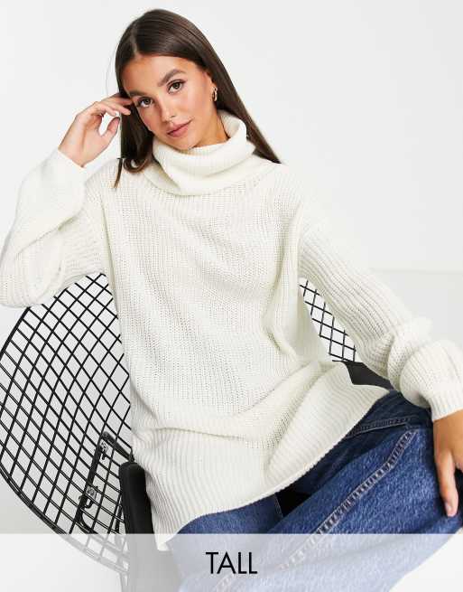 Vero Moda Tall - Pull long en laine mélangée à col roulé - Crème