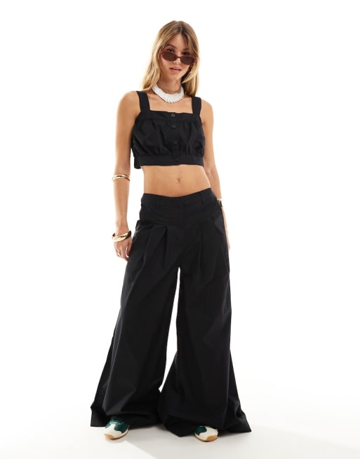 Vero Moda - Aware - Ensemble avec pantalon ample et crop top boutonné en coton - Bleu