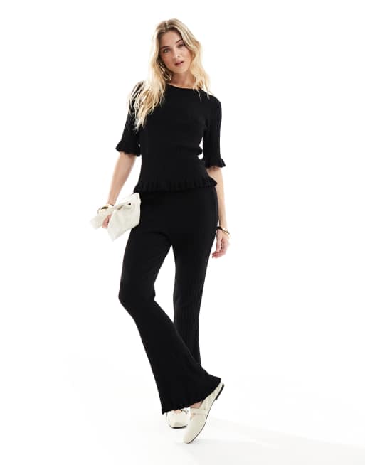 Vero Moda - Aware - Pantalon d'ensemble évasé en maille à bords ondulés - Noir
