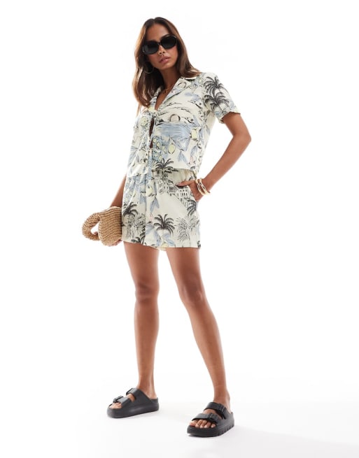Vero Moda - Bozy - Ensemble chemise nouée devant et short - Imprimé palmier