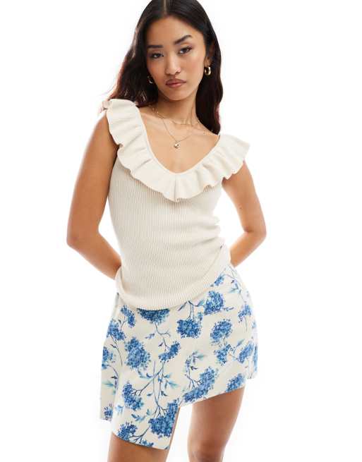 Vero Moda - Caraco à encolure volantée en maille - Crème
