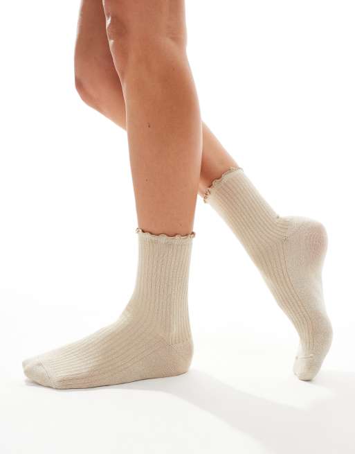 Vero Moda - Chaussettes pailletées à bords ondulés - Beige clair