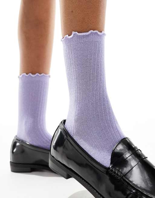 VERO MODA - Chaussettes pailletées côtelées à bord volanté - Lilas