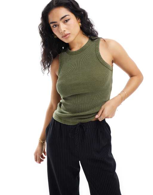 Vero Moda - Débardeur en jersey côtelé - Vert olive délavé