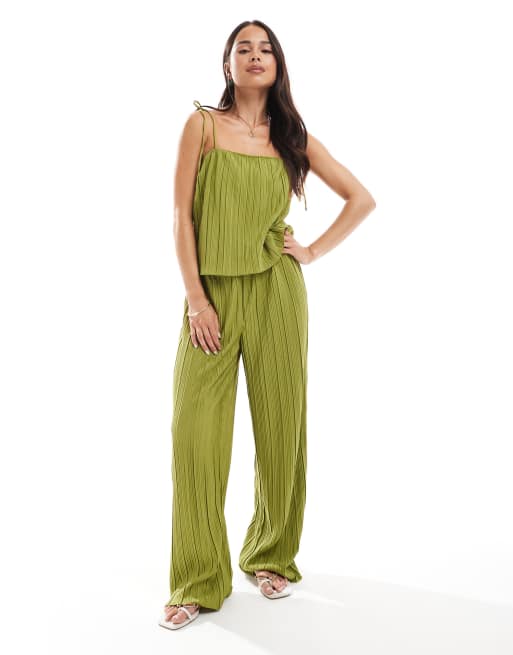 Vero Moda - Ensemble avec pantalon ample et caraco plissé à encolure carrée - Vert olive