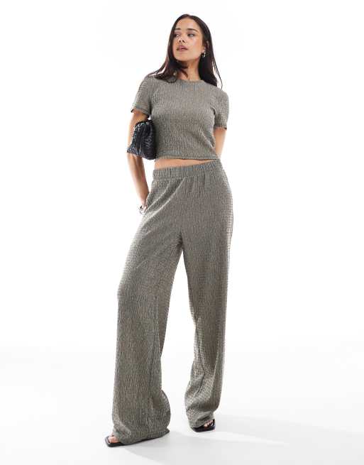Vero Moda - Ensemble en jersey texturé avec pantalon et top teints par section - Noir et blanc
