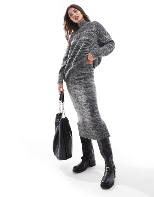 Vero Moda - Ensemble pull et jupe en maille - Noir et blanc chiné