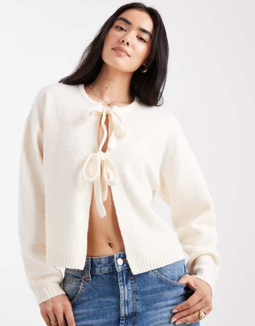 Vero Moda - Gilet en maille texturée noué devant - Crème chiné