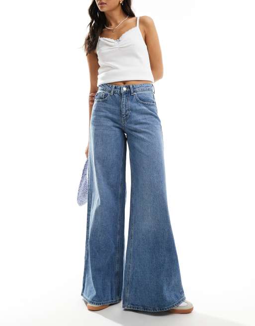 Vero Moda - Jean ultra ample - Bleu moyen délavé