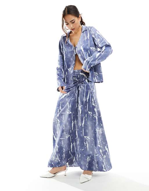 Vero Moda - Jupe longue d'ensemble satinée et froncée avec imprimé - Bleu