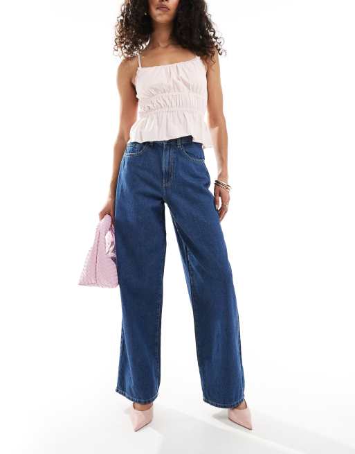 Vero Moda - Kirsa - Jean large à taille haute - Bleu moyen délavé