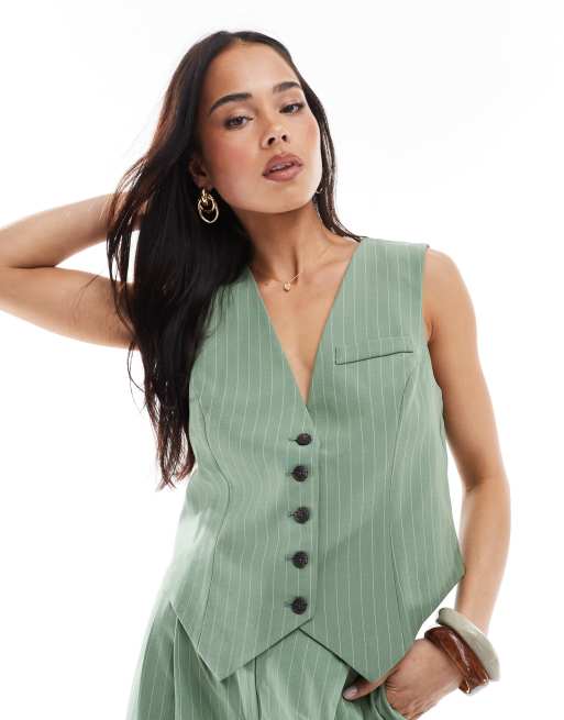 Vero Moda - Mix and Match - Gilet de tailleur d'ensemble à fines rayures - Vert
