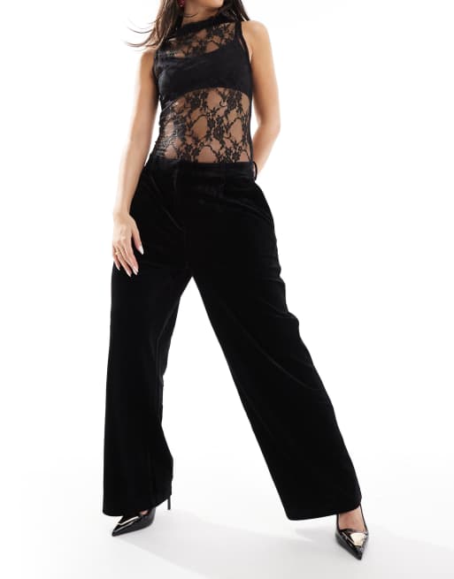 Vero Moda - Pantalon large en velours à taille haute - Noir