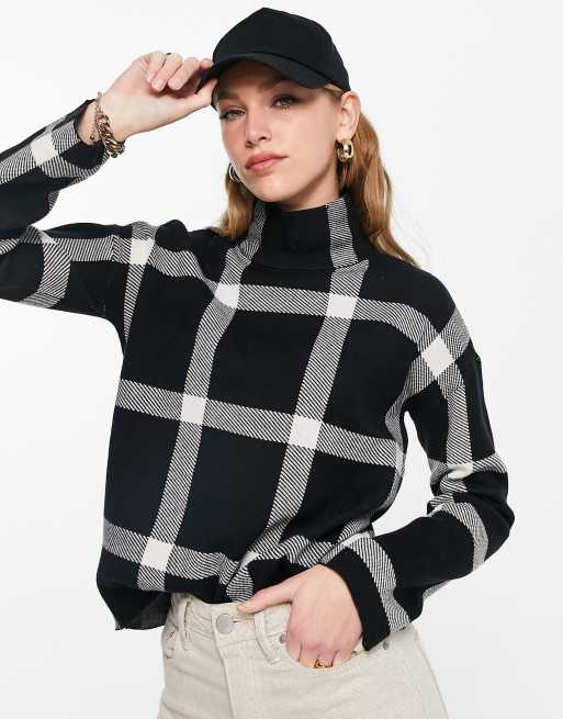 Vero Moda - Pull d'ensemble col montant à carreaux - Noir et blanc
