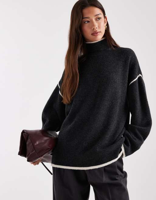 Vero Moda - Pull en maille à col montant et liseré contrastant - Gris chiné