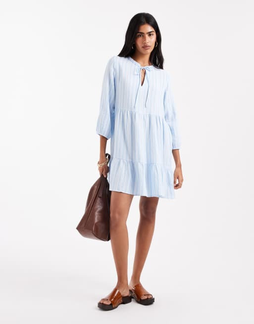 Vero Moda - Robe babydoll courte à rayures - Bleu pâle