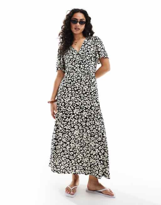 Vero Moda - Robe longue boutonnée à imprimé fleurs - Noir et blanc