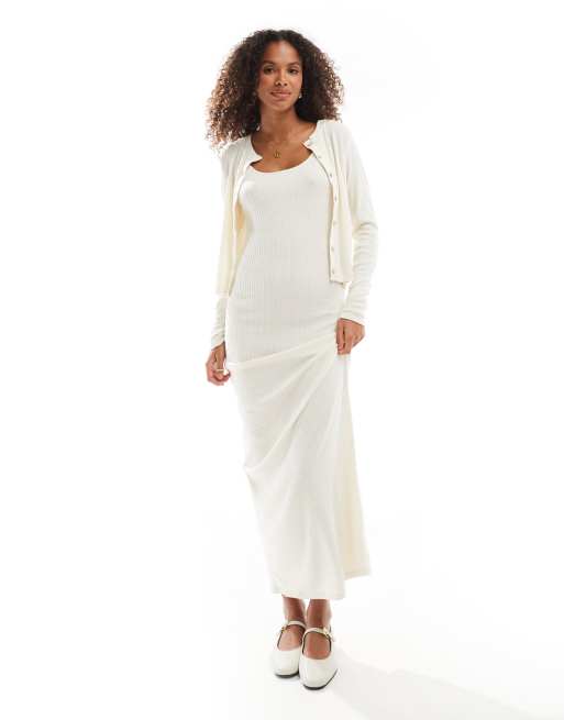 Vero Moda - Robe longueur cheville d'ensemble en tissu côtelé doux à fines bretelles - Crème chiné