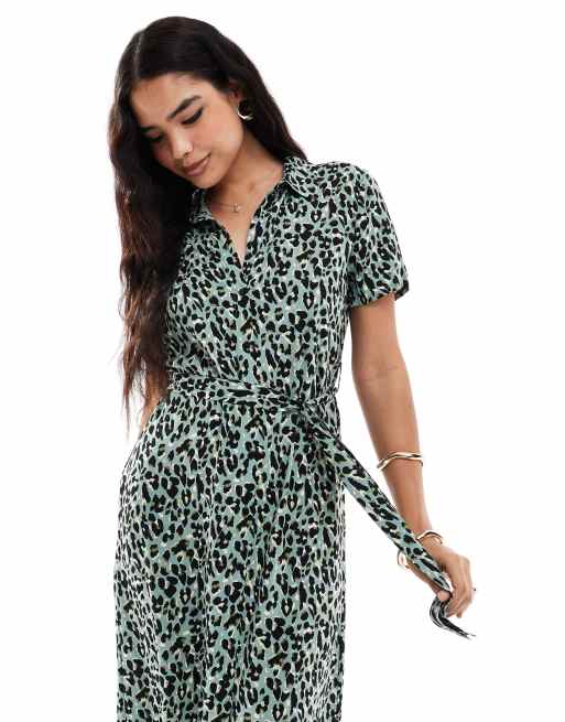Vero Moda - Robe mi-longue boutonnée à imprimé léopard - Vert