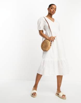 Vero Moda - Robe mi-longue en broderie anglaise avec nœud dans le dos - Blanc