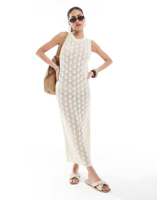 Vero Moda - Robe mi-longue en maille crochetée - Crème