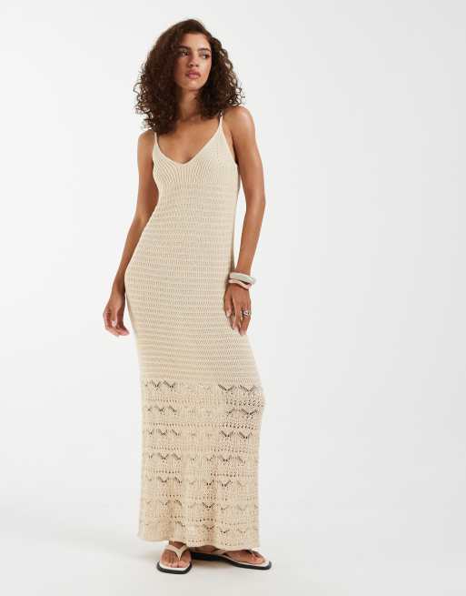 Vero Moda - Robe mi-longue en maille crochetée - Crème