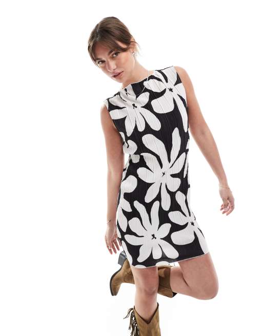 Vero Moda - Robe plissée courte et sans manches - Noir et blanc à imprimé fleurs