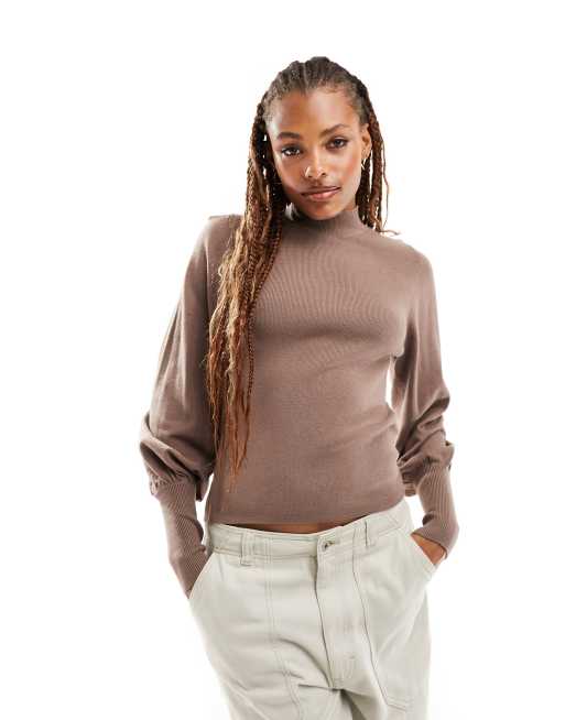 Vero Moda - Top en maille à manches ballon longues - Marron chocolat