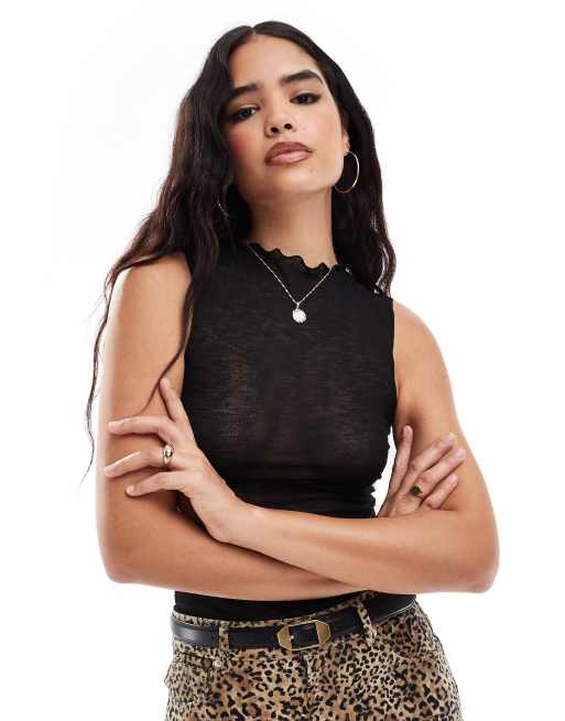 Vero Moda - Top sans manches à bords ondulés en jersey fin - Noir