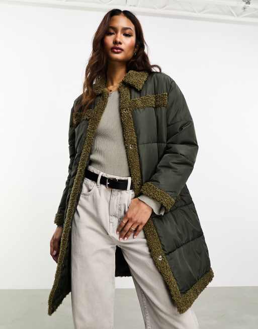 Vero Moda - Veste matelassée avec empiècements en imitation peau de mouton - Kaki